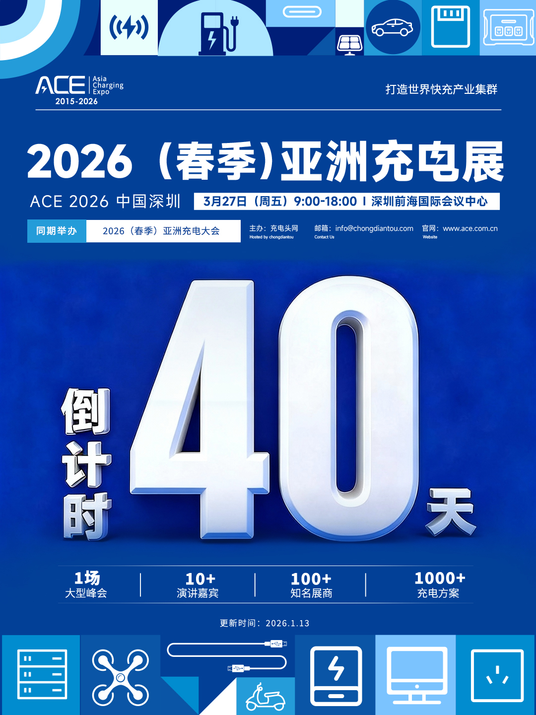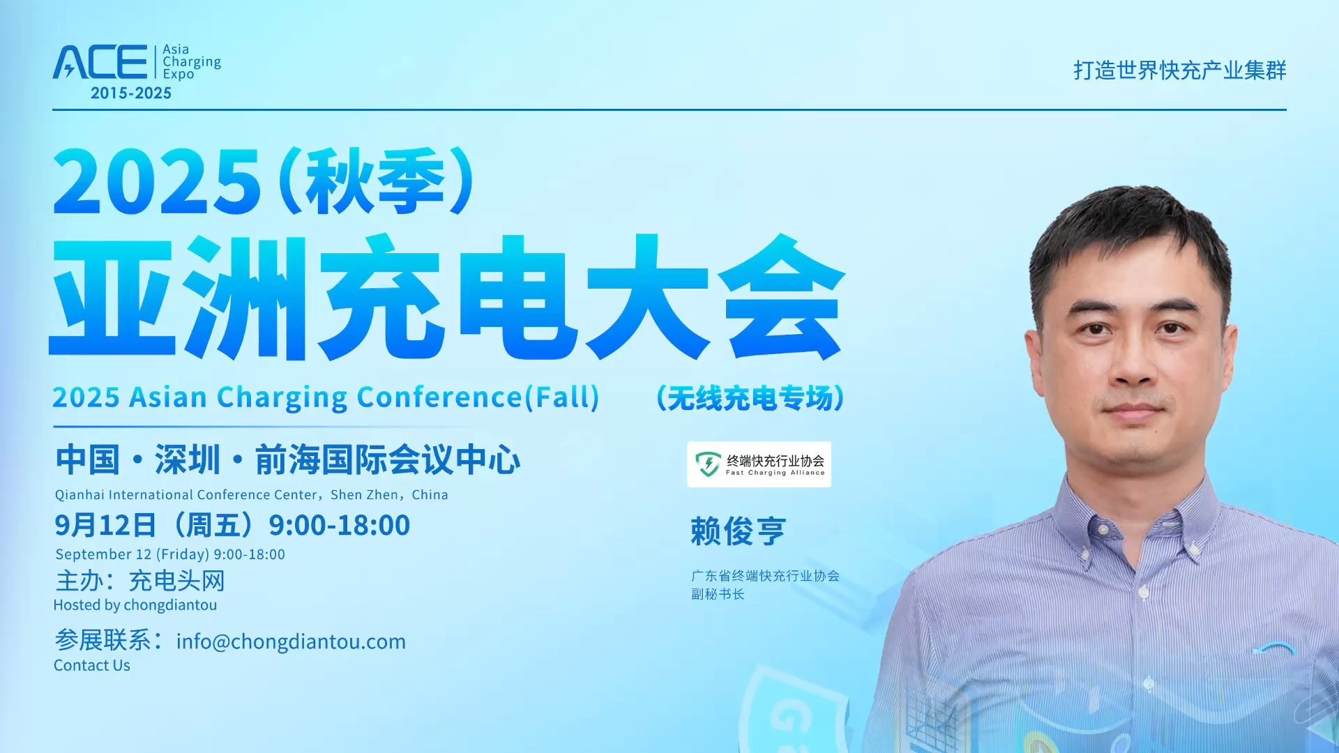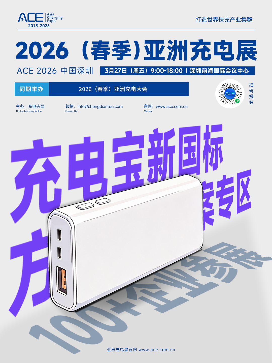 亚洲充电展( Asia Charging Expo )简称 ACE ,由充电头网发起,展会立足现代化国际都市群粤港澳大湾区,是全球影响最为广泛的能源电子技术展会之一,也是亚洲屈指可数的充电行业技术产业盛会。