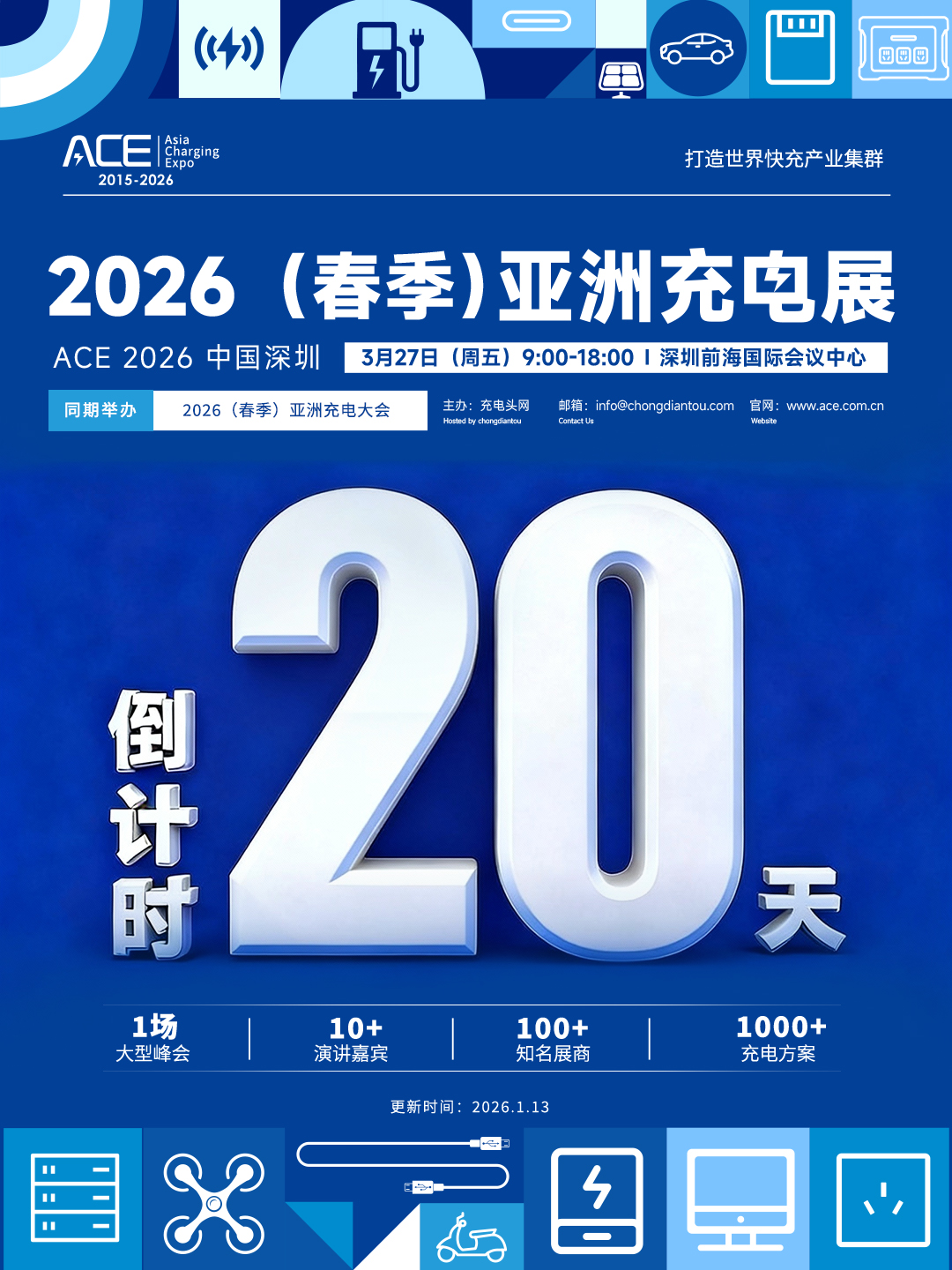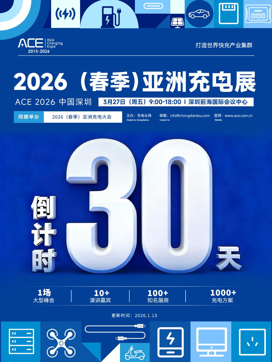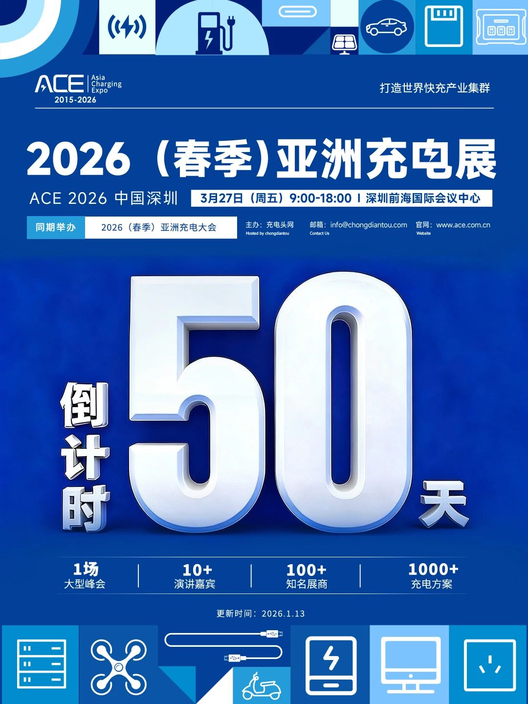 亚洲充电展( Asia Charging Expo )简称 ACE ,由充电头网发起,展会立足现代化国际都市群粤港澳大湾区,是全球影响最为广泛的能源电子技术展会之一,也是亚洲屈指可数的充电行业技术产业盛会。