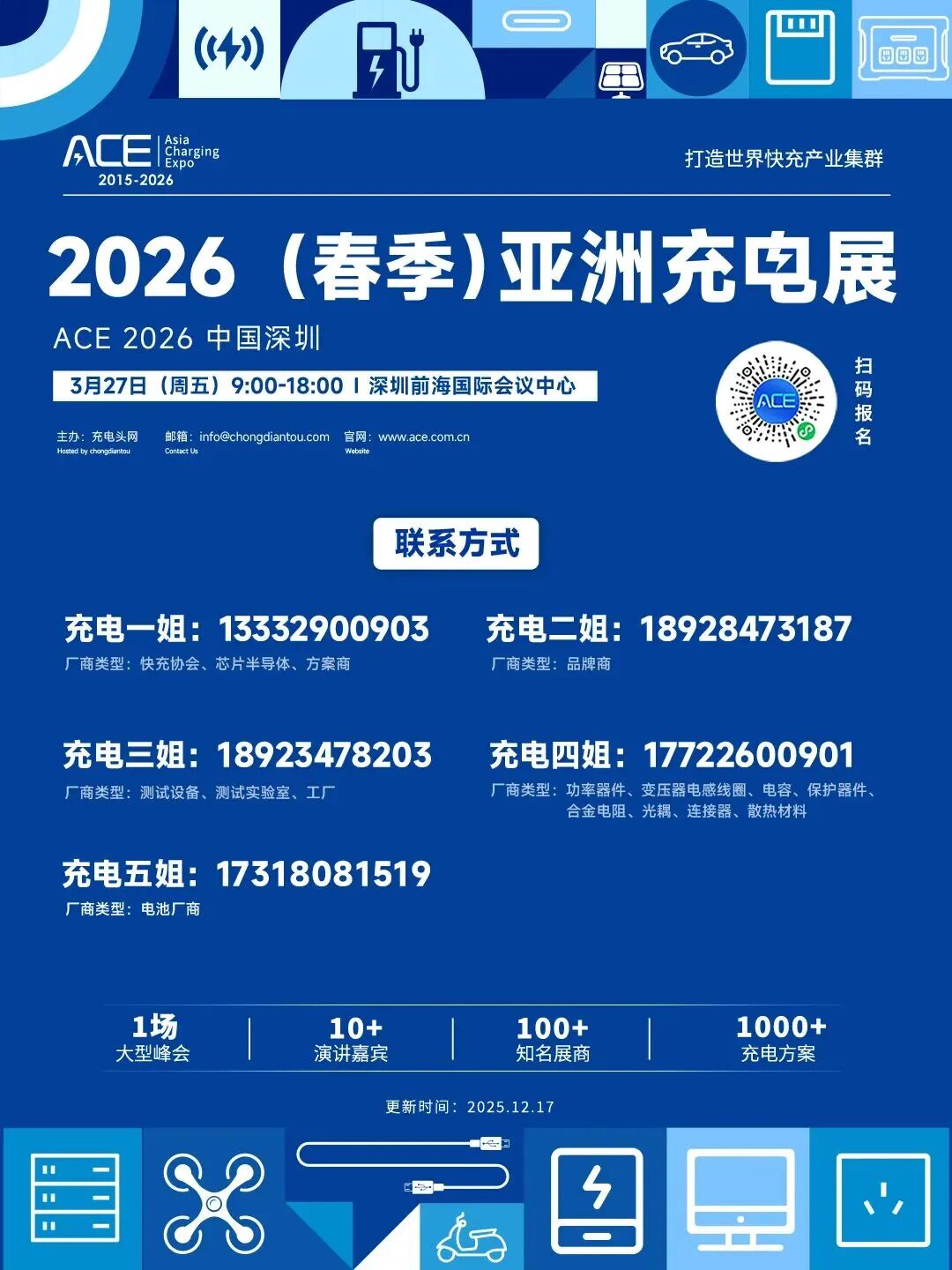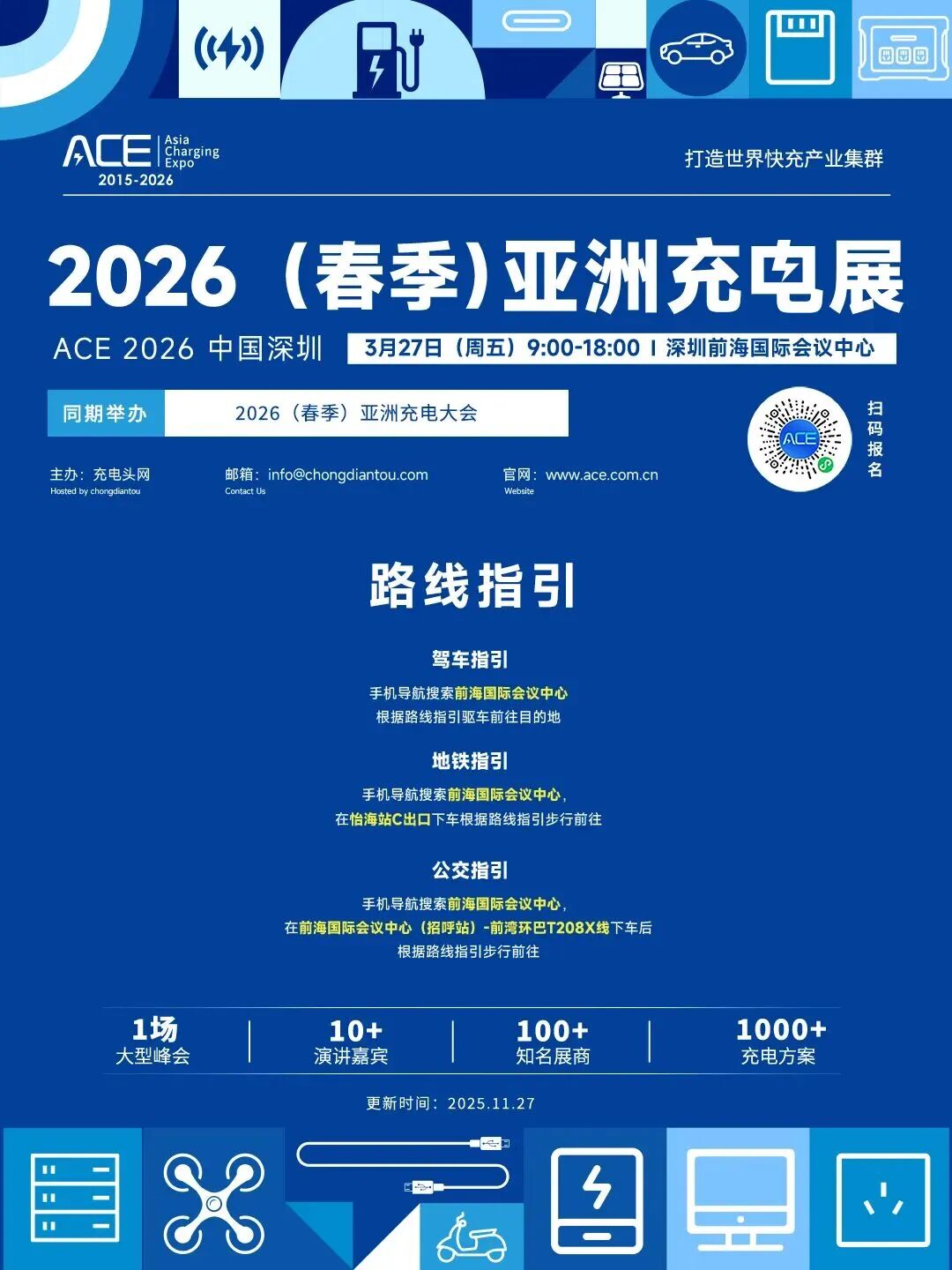 经亚洲充电展组委会商讨决定,2026(春季)亚洲充电大会将于2026年3月27日在深圳前海国际会议中心举办。