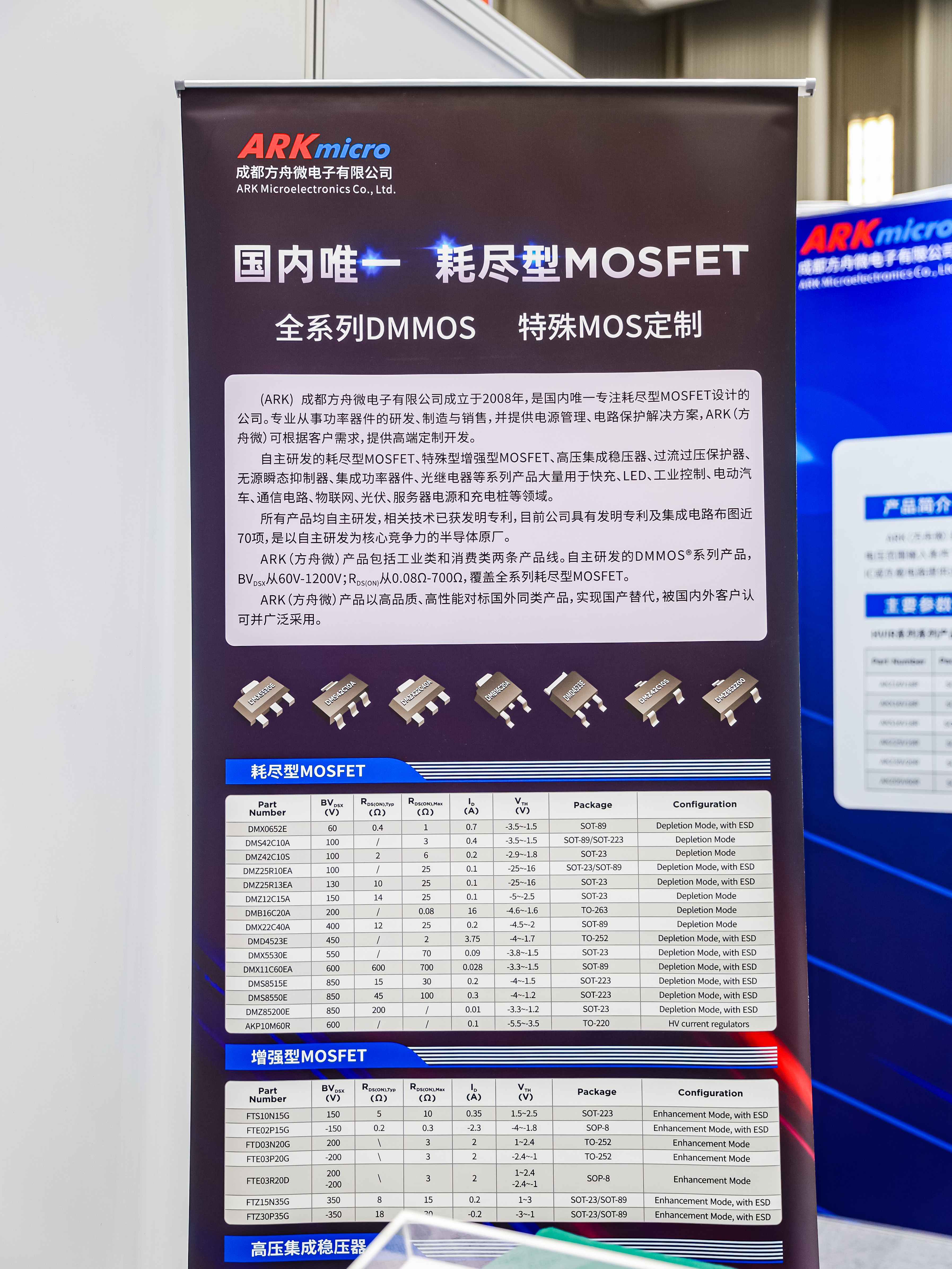 ARK(方舟微)产品包括工业类和消费类两条产品线。自主研发的DMMOS®系列产品,BVDSX从60V-1200V;RDS(ON)从0.08Ω-700Ω,覆盖全系列耗尽型MOSFET。