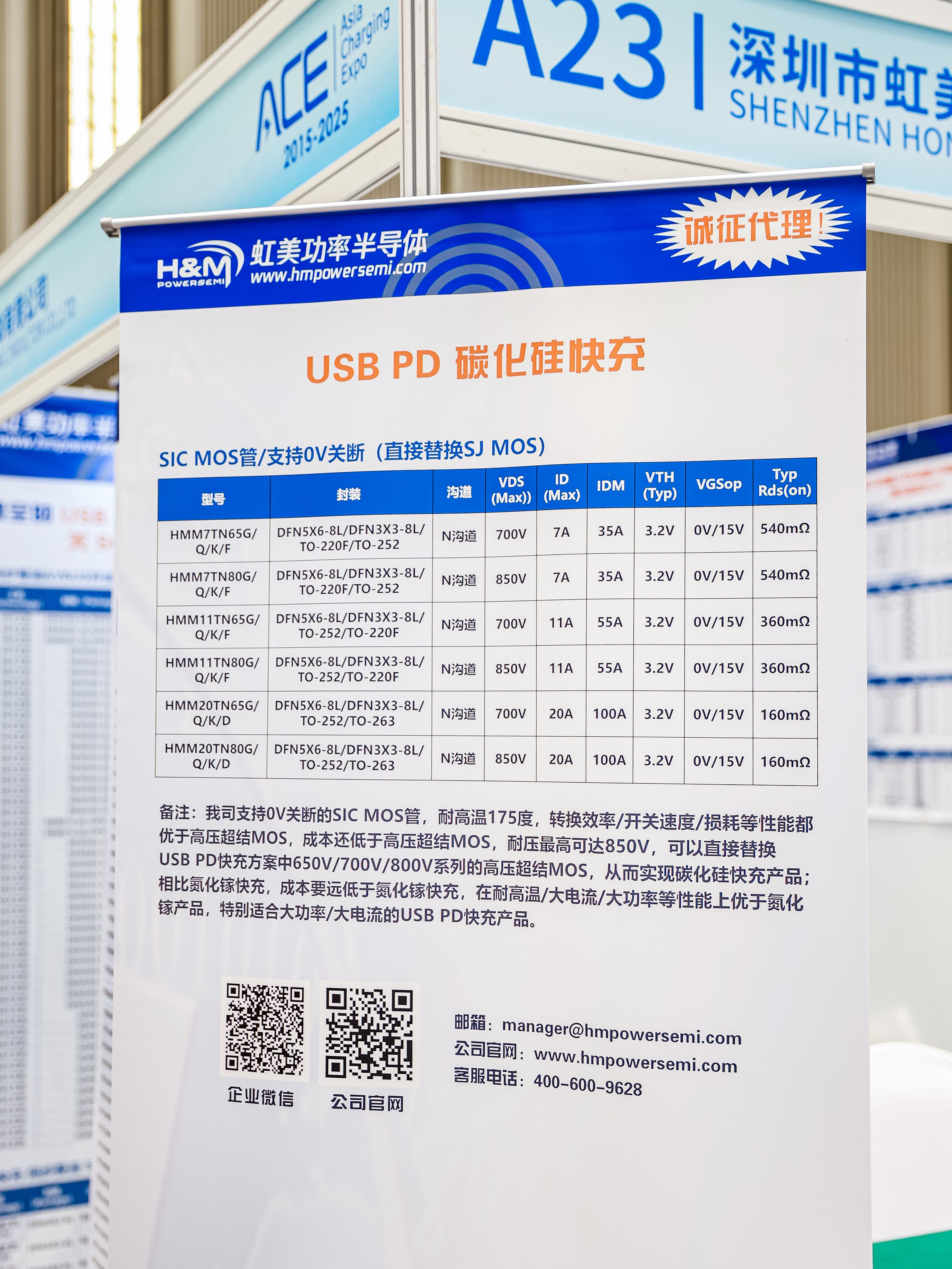 虹美功率半导体自公司成立以来,飞速发展,产品已涵盖了MOS管(低压沟槽MOS/中压大电流沟槽MOS/超结沟槽MOS/高压超结MOS/高压平面MOS)、IGBT单管、SiC 二极管、GaN FET等诸多种类上百个型号。