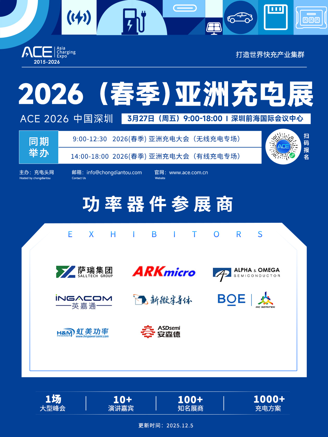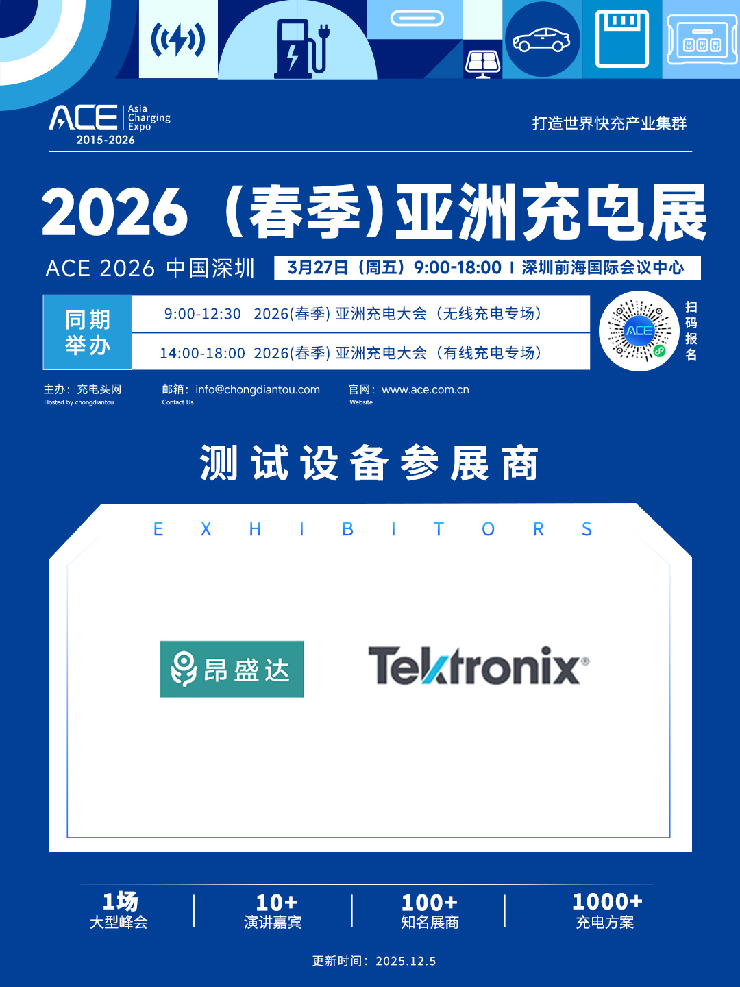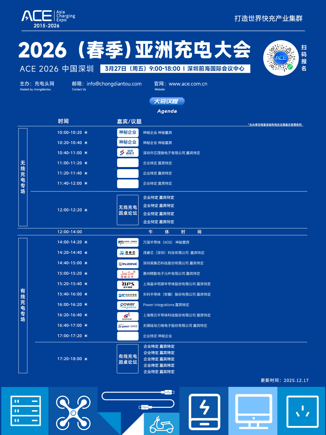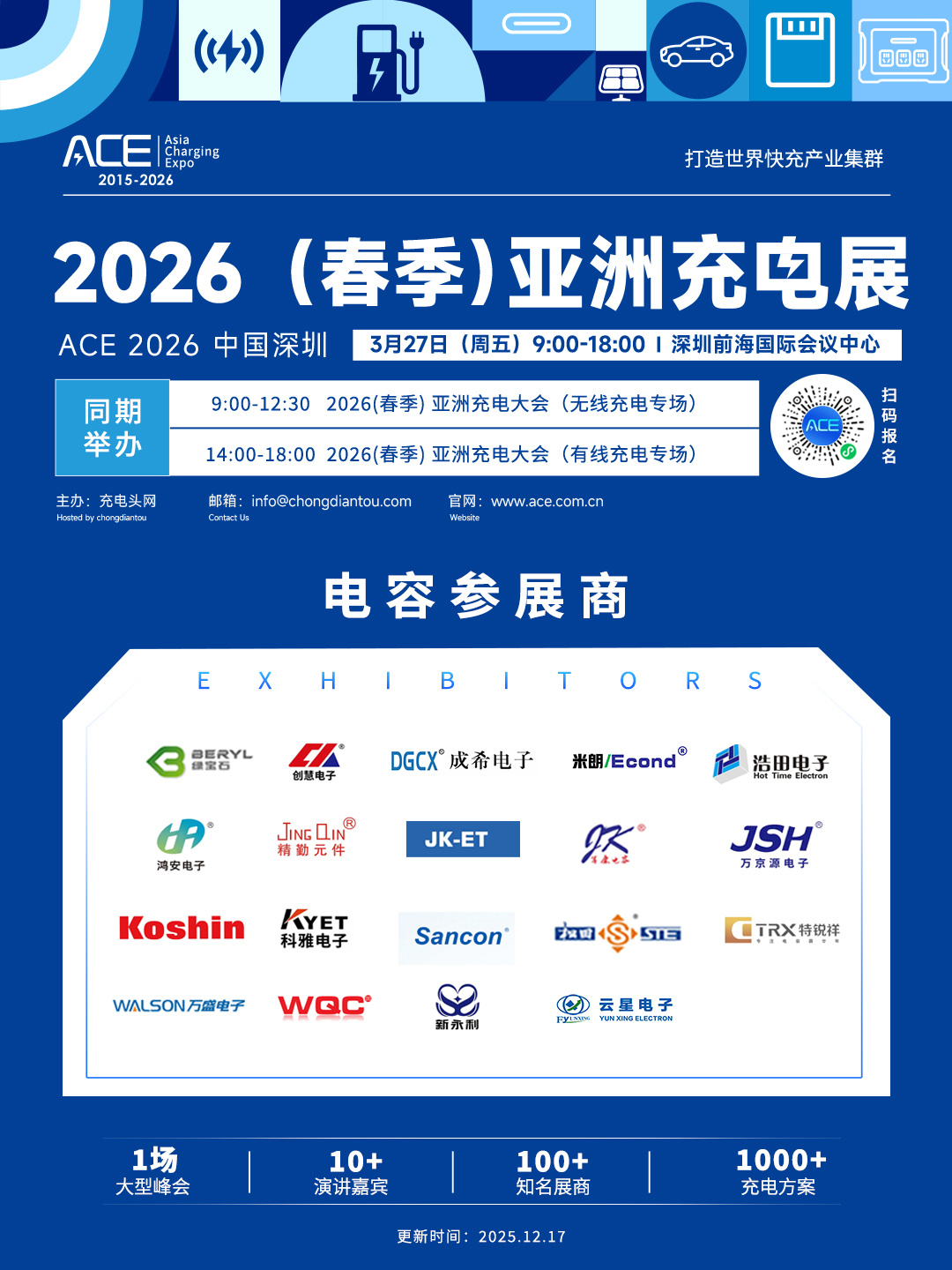 2026(春季)亚洲充电展正式定档!将于3月27日(周五)在深圳前海国际会议中心举办,目前已有多家行业内知名企业报名参展。